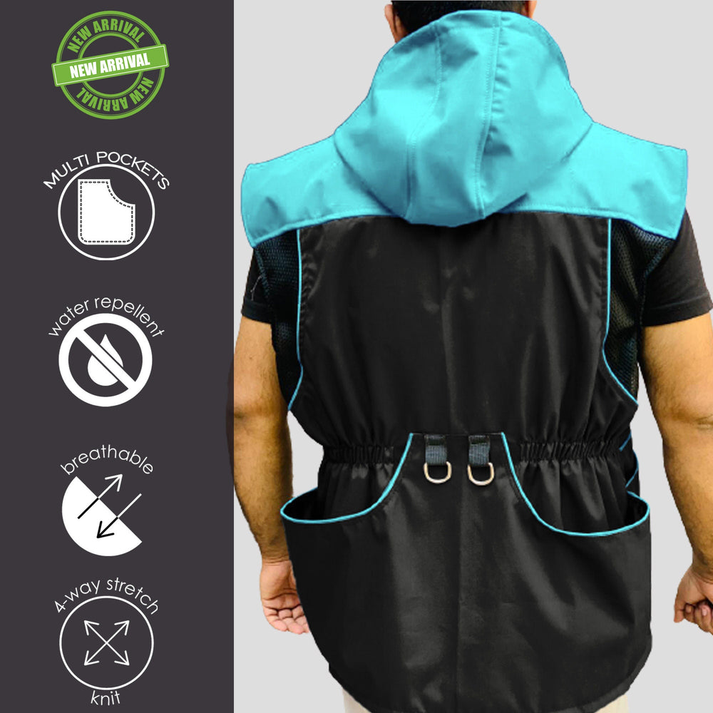 La combinaison de polyester résistant et déchirable avec un tissu en maille espacé à l'intérieur permet à l'ensemble de la structure de respirer. Les fermetures éclair YKK garantissent également la fiabilité de cet élément. La taille ajustable stabilise le gilet lors de mouvements intenses. Il peut être porté aussi bien par-dessus un t-shirt que sur une veste chaude épaisse (toutes saisons). Le gilet est équipé de poches facilement accessibles, d'une poche traversante à l'arrière avec un système très pratique pour augmenter la capacité de la poche (tout guide appréciera cette solution), d'une poche intérieure avec un emplacement pour le cordon des écouteurs, de deux poches sur la poitrine avec des boutons-pression et d'une poignée spéciale permettant de donner rapidement la friandise à votre chien. Nous l'avons fabriqué à la main, en prenant soin de chaque détail pour garantir le confort du travail du maître-chien. La coupe fonctionnelle et les solutions pratiques font de ce gilet un choix idéal pour toute activité avec un chien (entraînement, sports, promenades, etc.).
